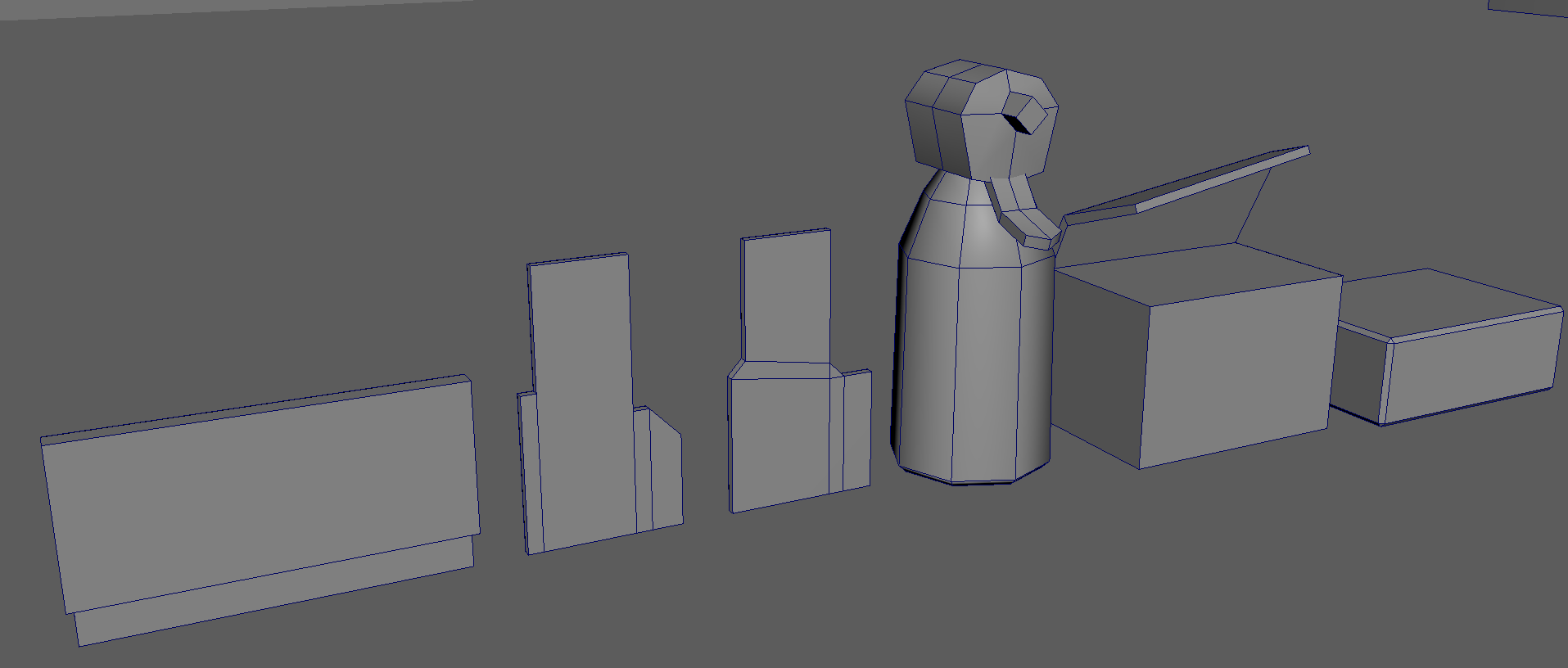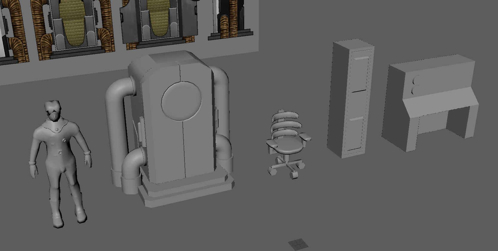 Our 3d modeller, Arnold, has made quick and steady work of these concepts, turning them into amazing 3d models, which will all soon be implemented in game. Gone will be the days of the ProBuilder grey-boxes inhabiting our levels! He's also gone ahead and modelled some of the items you will be able to find and pickup in levels, based off some inventory sprites (not pictured).