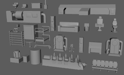 Our 3d Modeller, Arnold has finished modelling all the props, and is currently unwrapping the UVs, preparing them for me to jump in and get them textured! He's also being working hard to deliver amazing animations for our eneimes and main character.